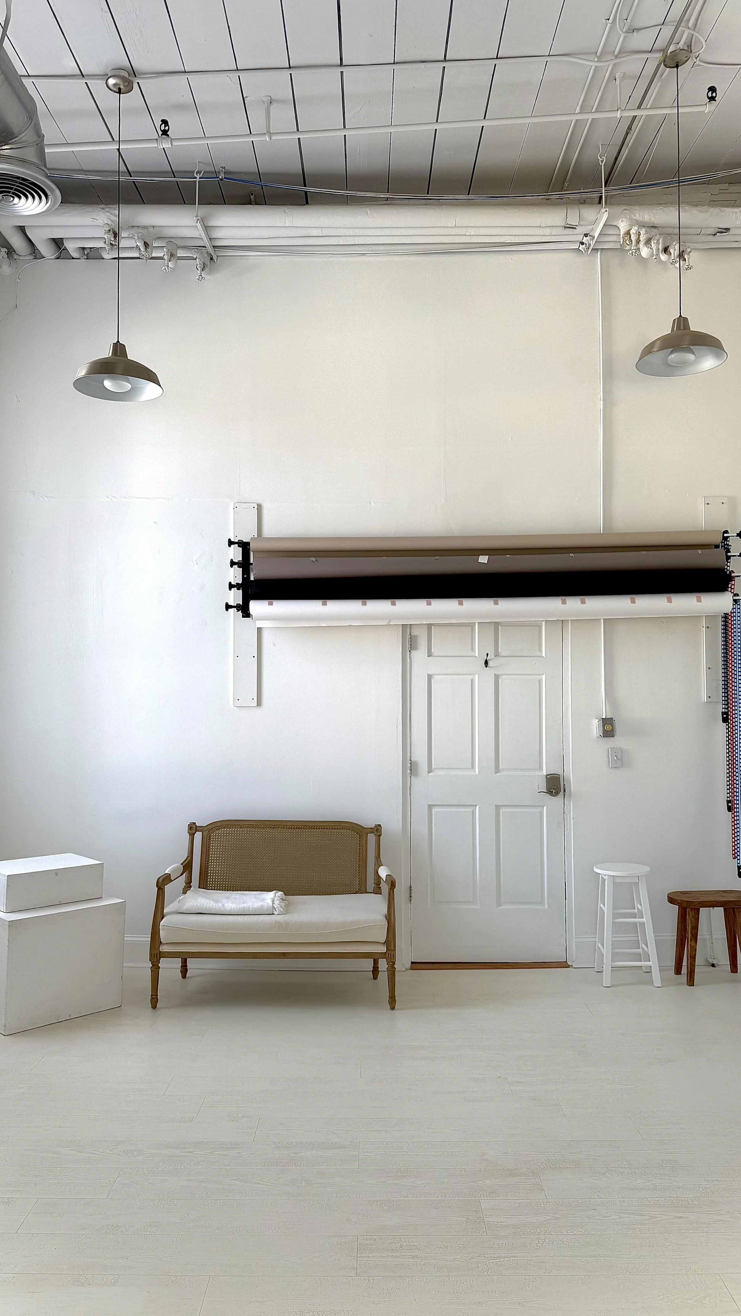 Born from a shared vision, the studio was created to be a clean, natural-light-filled environment where creativity can thrive. With a deep understanding of how light transforms an image — and how important it is to feel inspired in your workspace — we poured intention into every detail. From the seamless paper backdrops to the cozy sitting area, every corner was designed to make it easy for you to show up, feel at home, and create your best work.